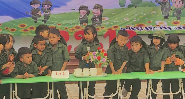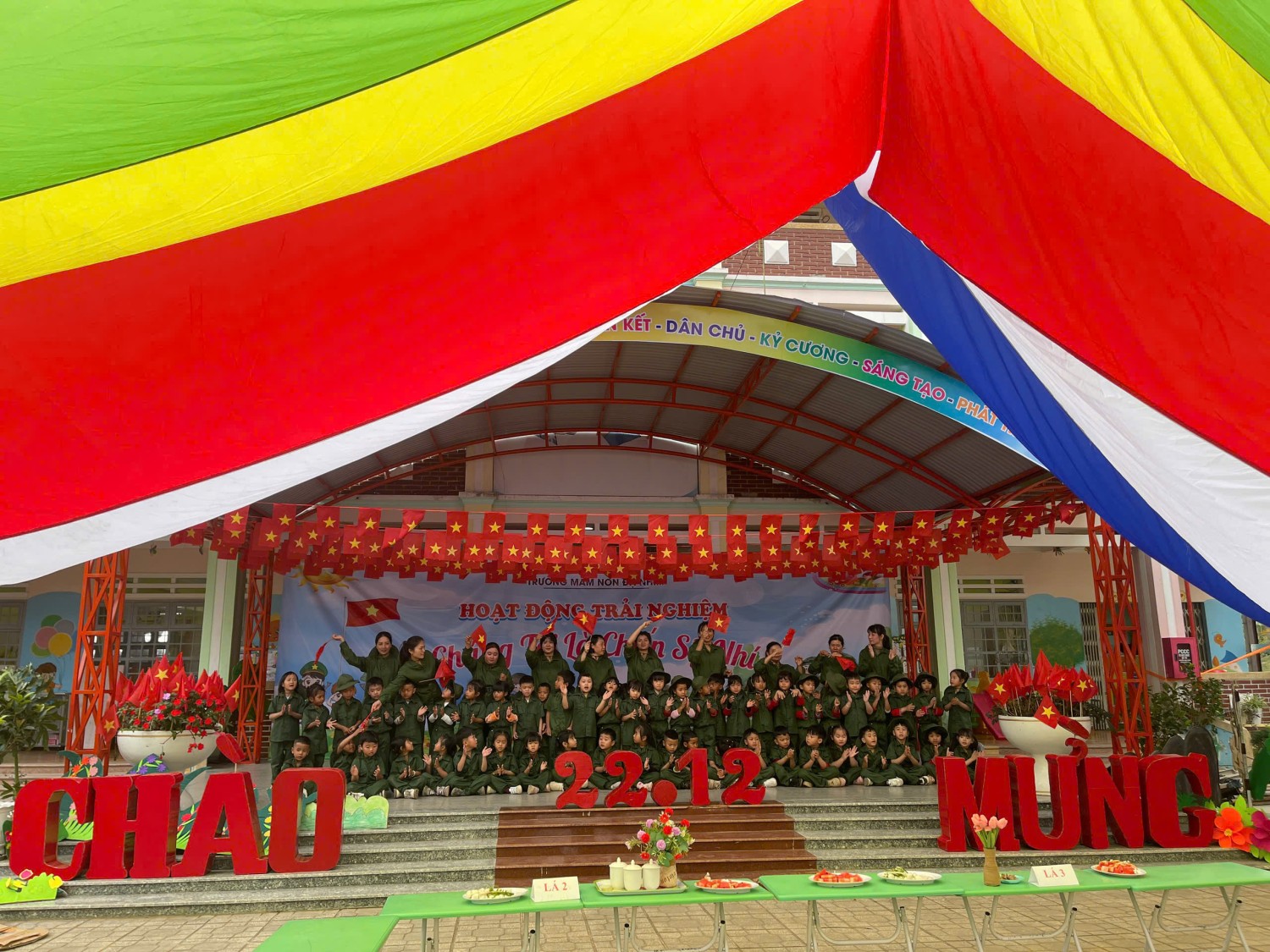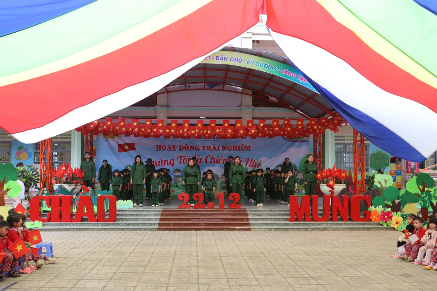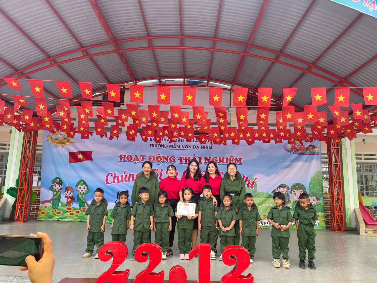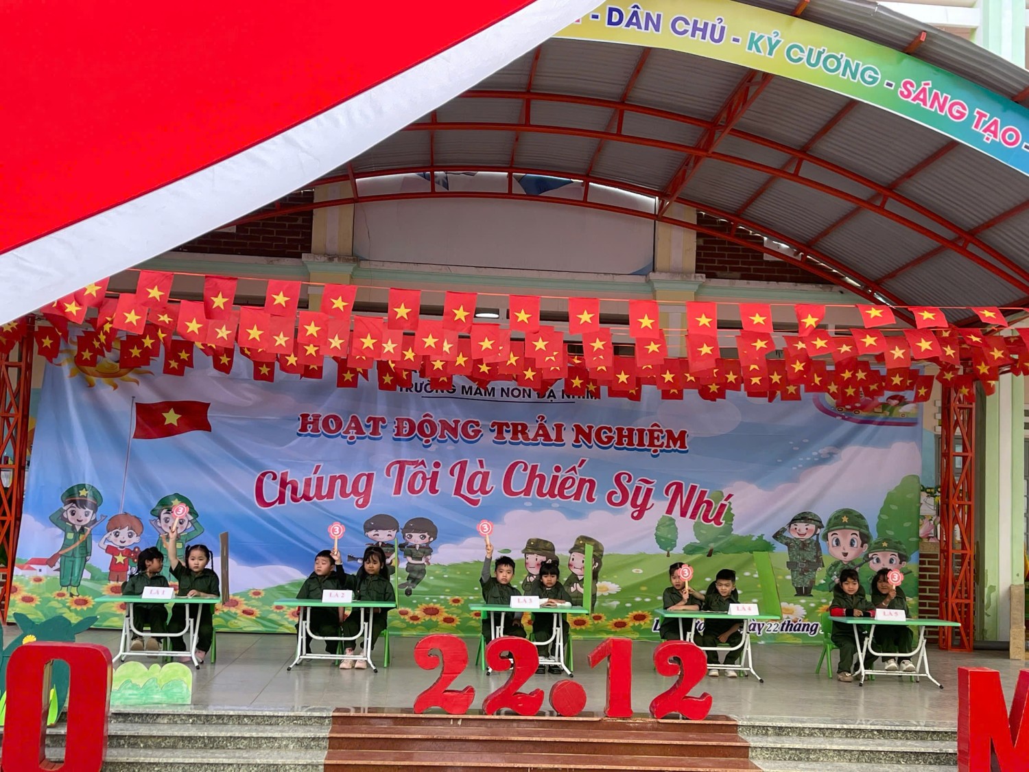Nhân dịp kỷ niệm Ngày thành lập Quân đội nhân dân Việt Nam 22/12, Trường Mầm non Đạ Nhim tổ chức Hoạt động trải nghiệm “Chúng tôi là Chiến sĩ nhí” năm học 2025-2026. Hoạt động nhằm tạo cơ hội cho trẻ mầm non được tham gia các hoạt động trải nghiệm phù hợp với lứa tuổi, qua đó giáo dục truyền thống yêu nước, tinh thần kỷ luật, ý thức tập thể và góp phần phát triển toàn diện cho trẻ.