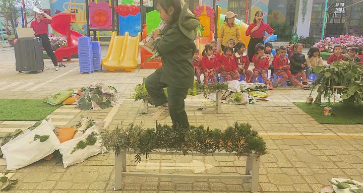 Phần Vận động – “Chiến sĩ khỏe mạnh” là nội dung sôi nổi, hấp dẫn với các bài vận động liên hoàn như chạy, chui qua hầm, vận chuyển lương thực, giữ thăng bằng, trườn và bắn súng mô phỏng. Qua đó, trẻ được rèn luyện thể lực, sự khéo léo, tinh thần phối hợp và ý thức tuân thủ quy định trong hoạt động tập thể.