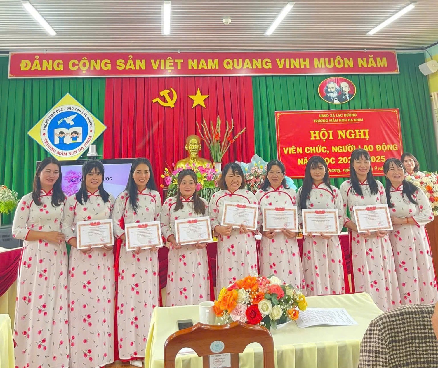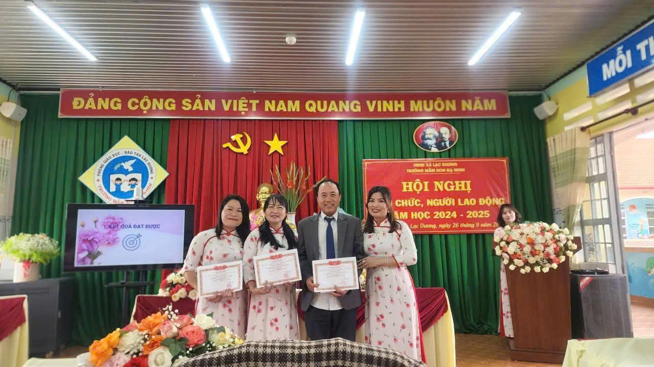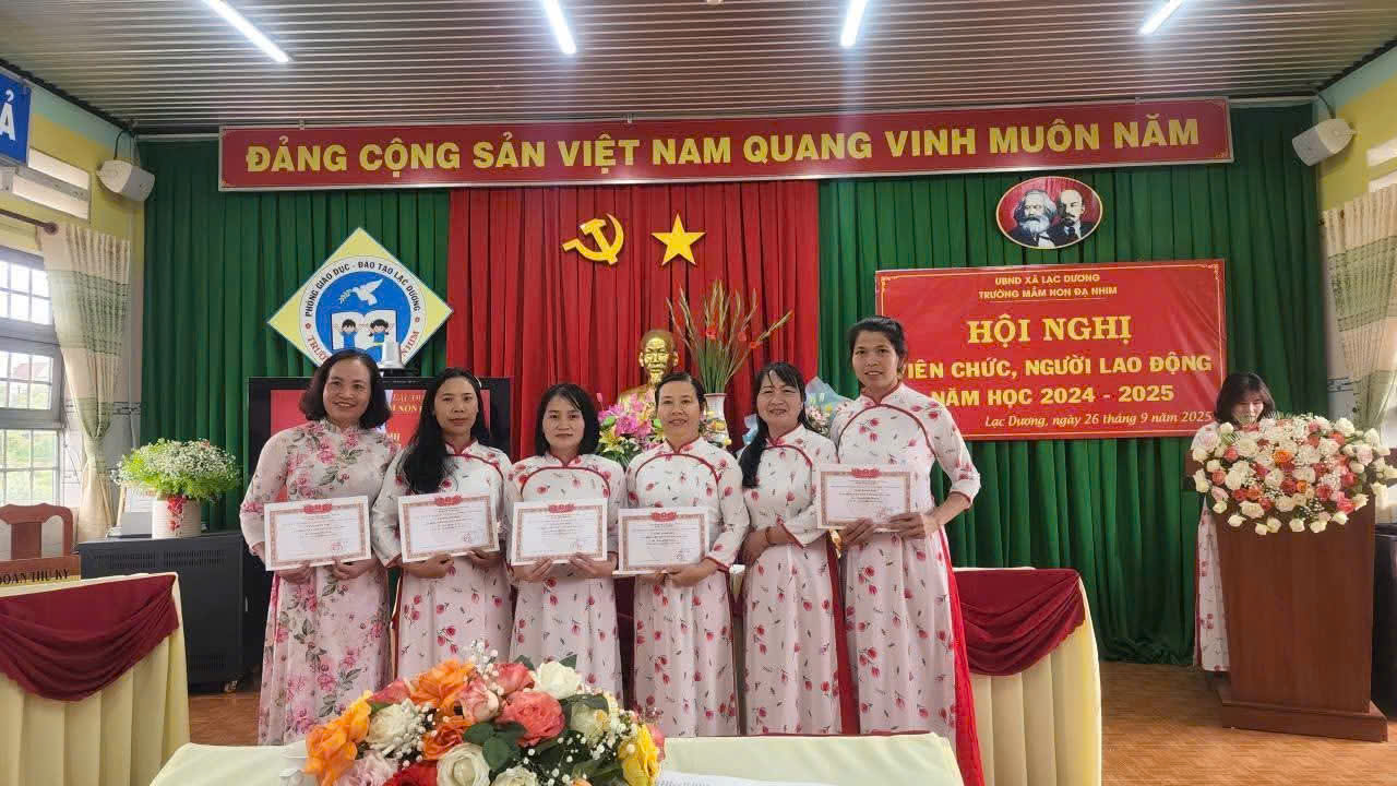 Một điểm nhấn quan trọng của hội nghị là công tác thi đua – khen thưởng. Nhiều cá nhân và tập thể có thành tích xuất sắc trong năm học 2024 – 2025 đã được tuyên dương, ghi nhận sự nỗ lực, cống hiến không ngừng trong công tác nuôi dạy trẻ. Những phần thưởng ấy không chỉ là sự khích lệ tinh thần, mà còn là động lực mạnh mẽ để đội ngũ cán bộ, giáo viên, nhân viên tiếp tục phấn đấu, lan tỏa tinh thần trách nhiệm và nhiệt huyết trong toàn trường.